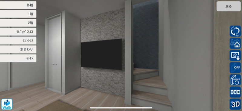 当物件では打合せ段階からVR上での3Dモデルを作成し、スマートフォン等で間取りやカラーを確認してきました。3Dモデルでは中を自由に歩いたり、任意の場所からの景色を確認したりできるため、完成イメージが格段にわかりやすくなります。また現在、物件の完成が近づきVRと実物のずれが少ないことも確認できています。